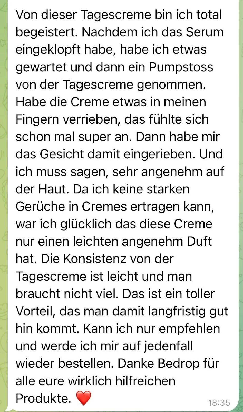 Heute, sechs Monate später, ist der Bedrop Tagescreme fester Bestandteil meiner Morgenroutine geworden.