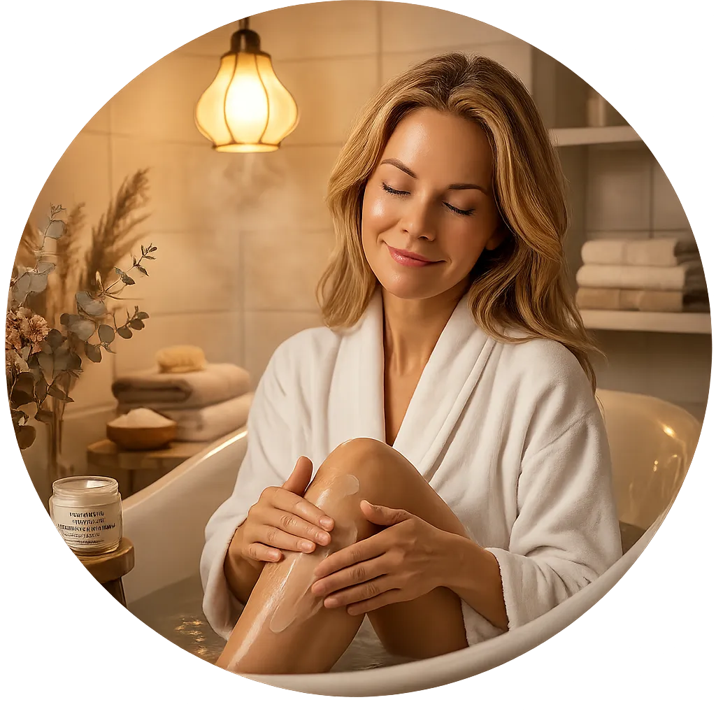 Was darin steckt: Bienengift. Aufgetragen wie Körpercreme. Keine Behandlung. Keine Therapie. Pflege – so selbstverständlich wie Zähneputzen. Nicht wenn etwas wehtut. Täglich. Immer.