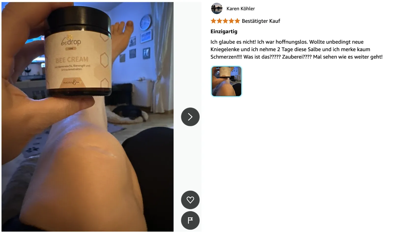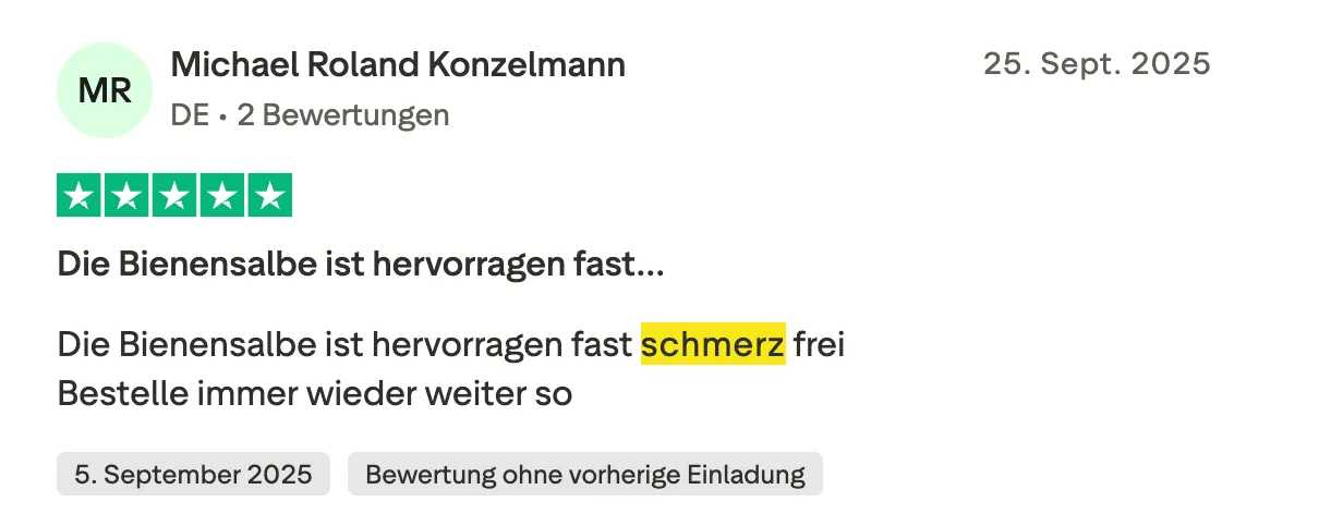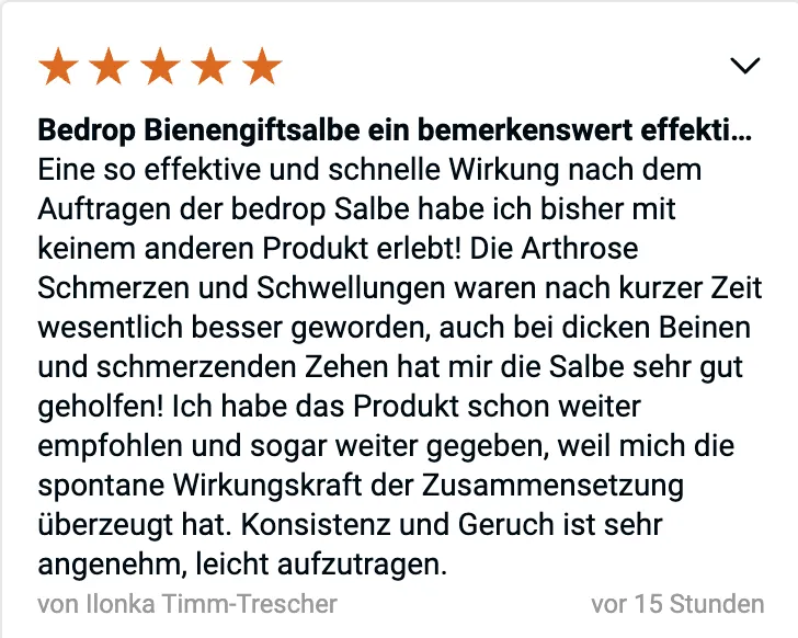 Und diese 5 sind keine Ausnahmen. Über 120.000 Anwender in Deutschland und Europa haben die Bee Cream bereits ausprobiert. Hier ist ein kleiner Ausschnitt aus dem, was sie berichten.