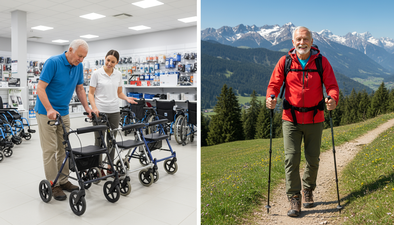 Der Rollator? Den braucht jetzt jemand anderes. Ich brauche nur noch meine Wanderschuhe."