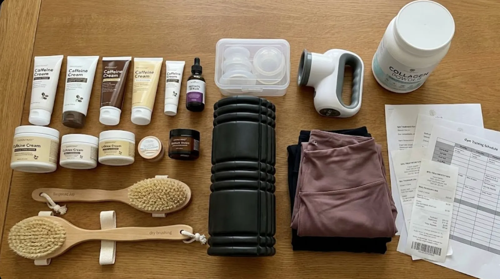 Acht verschiedene Koffein-Cremes: 347€ - "Versprechen: Reduziert Cellulite in 14 Tagen. Realität: Nach 2 Stunden sieht alles wieder gleich aus."