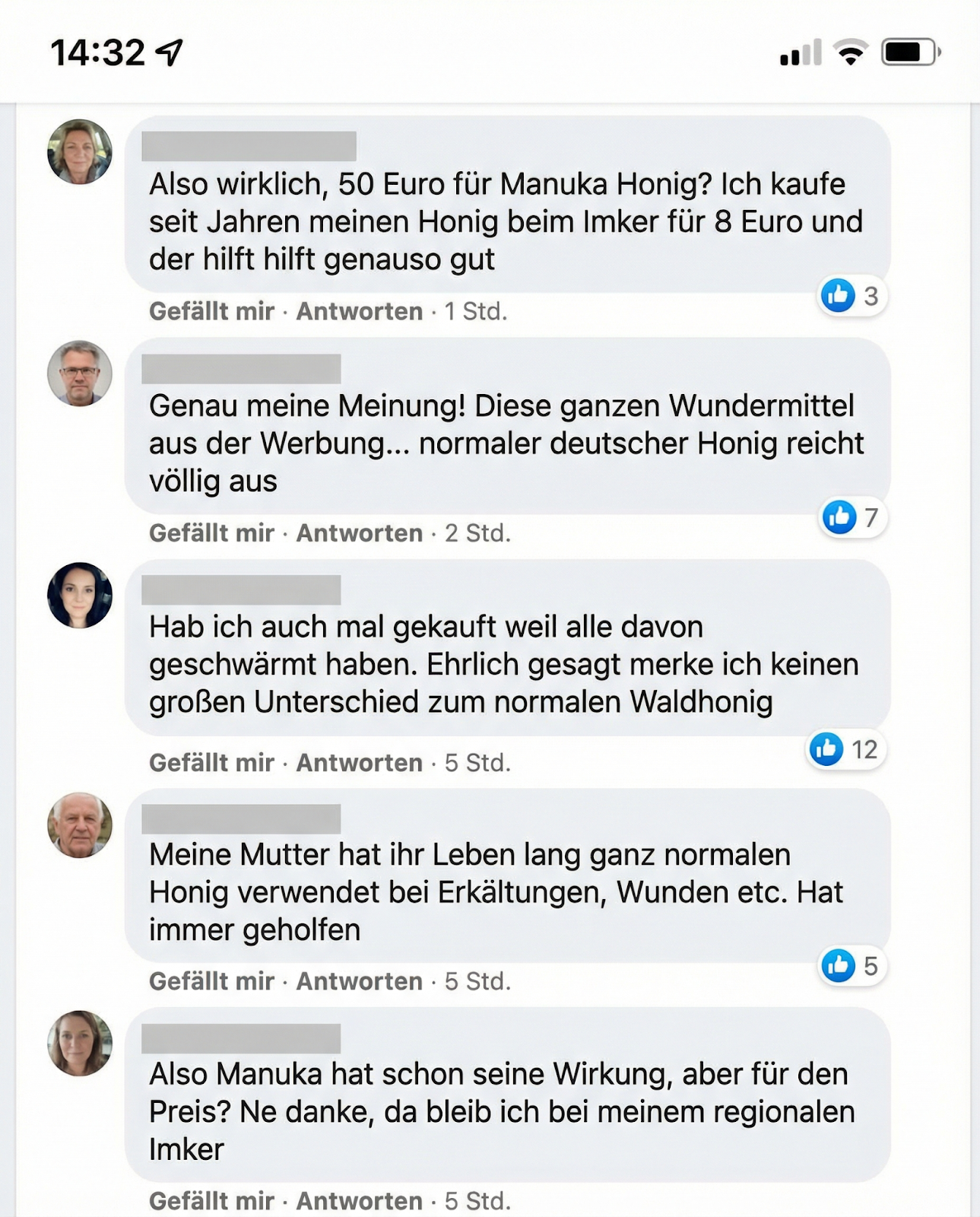 Dann antworte ich: „Für den täglichen Genuss und aufs Brot: Nein. Da tut es jeder gute regionale Honig. Aber wenn Sie wirklich krank sind und auf Wirkstoffe angewiesen sind, die im Körper stabil bleiben: Da macht Manuka den Unterschied."