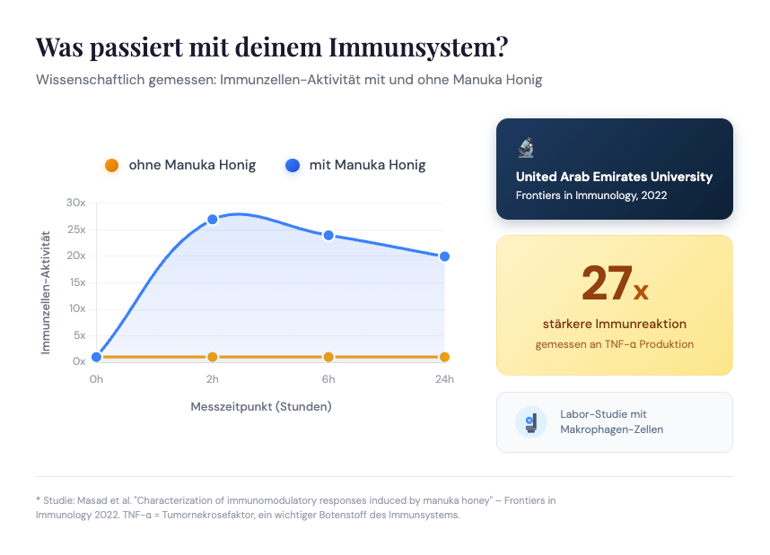 Das erklärt, warum Manuka bei innerer Anwendung tatsächlich Vorteile bietet. Nicht weil die Imker dort geschickter wären.