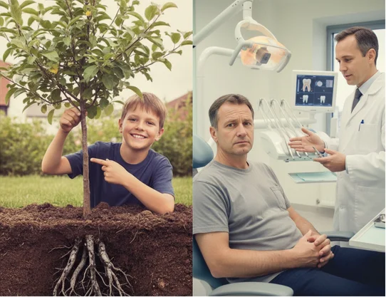 Denken Sie an die Geschichte vom Apfelbaum: Prävention ist in der Zahnmedizin alles. Genau wie bei den Wurzeln eines Baumes können wir die entscheidenden Prozesse nicht sehen, aber wir können sie beeinflussen, solange noch Zeit ist. Der junge Mann in der Geschichte hat nur auf das geachtet, was schön und sichtbar war, während die Wurzeln verrotteten.