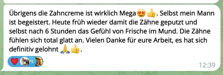 Werden Sie Teil einer wachsenden Gemeinschaft von Menschen, die endlich den Durchbruch in der natürlichen Zahnpflege gefunden haben. Die Vorher-Nachher-Berichte sprechen für sich.