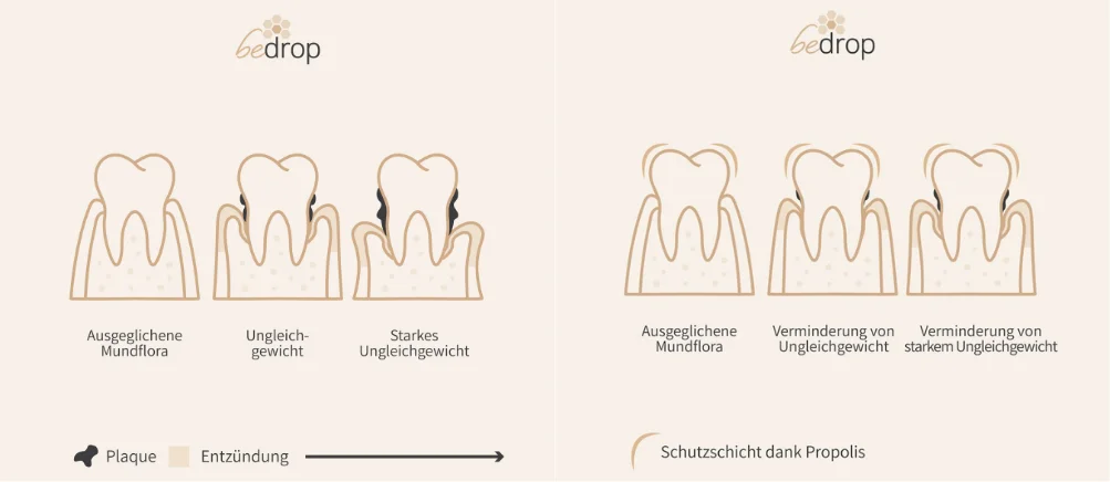 Besonders wertvoll ist die Fähigkeit von Propolis, einen natürlichen Schutzfilm auf Zahnfleisch und Schleimhäuten zu bilden. Forschungen zeigen außerdem, dass dieser Bienenwirkstoff die natürlichen Regenerationsprozesse des Gewebes unterstützen kann. Die in Propolis enthaltenen Flavonoide wirken zudem als natürliche Antioxidantien und tragen so zum Schutz der empfindlichen Mundschleimhäute bei.