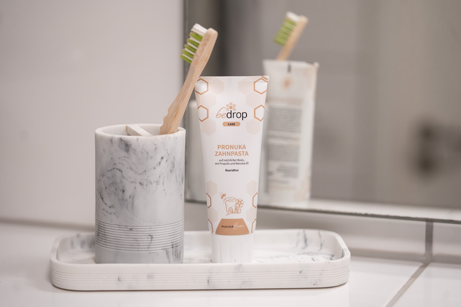 Die Pronuka Zahnpasta von bedrop unterscheidet sich fundamental von herkömmlichen Produkten. Basis ist eine innovative Naturrezeptur, die wissenschaftlich für die Pflege bei Zahnfleischbluten optimiert wurde: