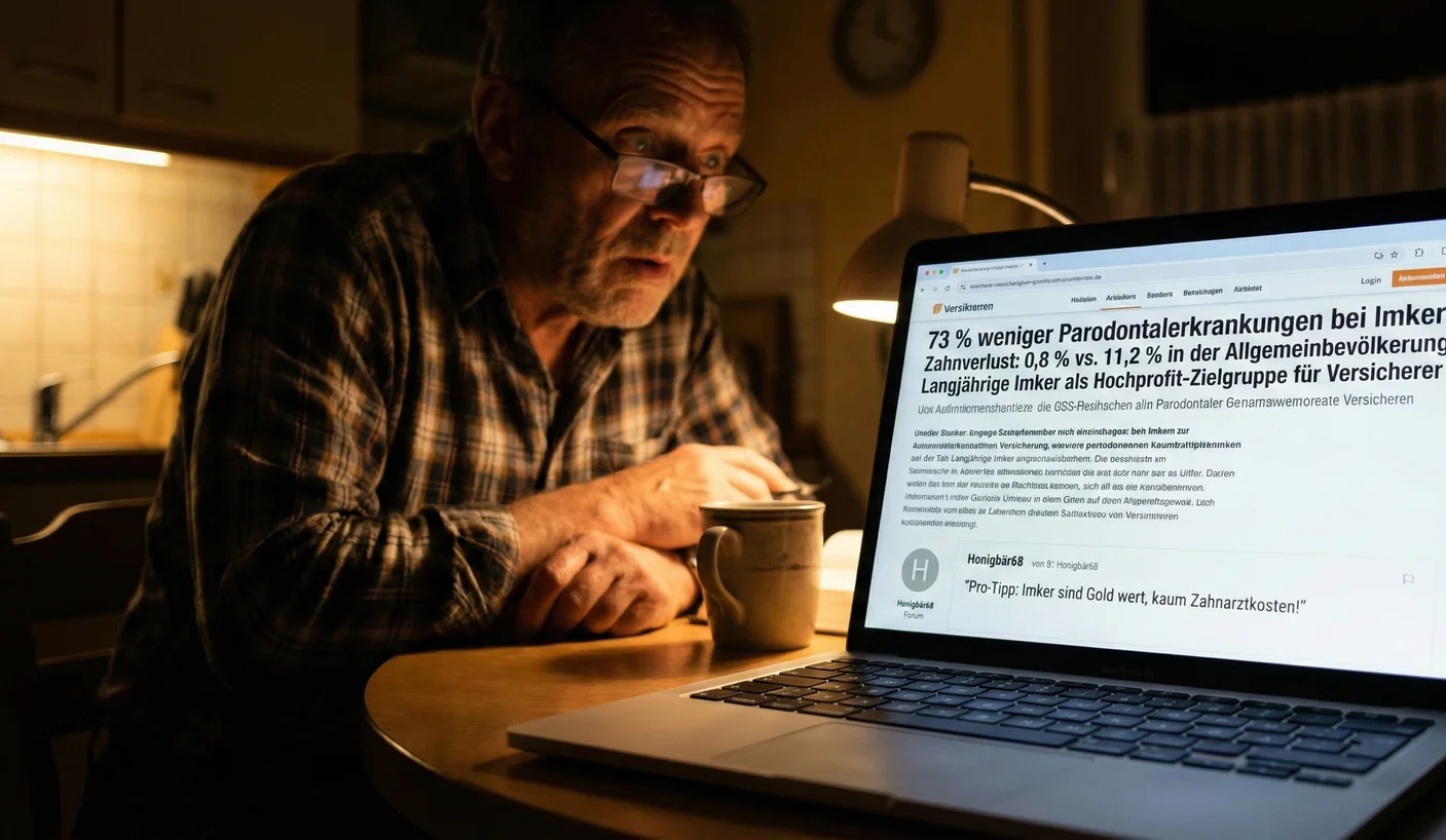 "Berufsgruppen-Analyse zeigt: Langjährige Imker weisen eine um 73% niedrigere Rate schwerer Parodontalerkrankungen auf als die Allgemeinbevölkerung. Zahnverlust nahezu nicht existent (0,8% vs. 11,2% in Kontrollgruppe). Für Zahnzusatzversicherungen hochprofitable Zielgruppe."