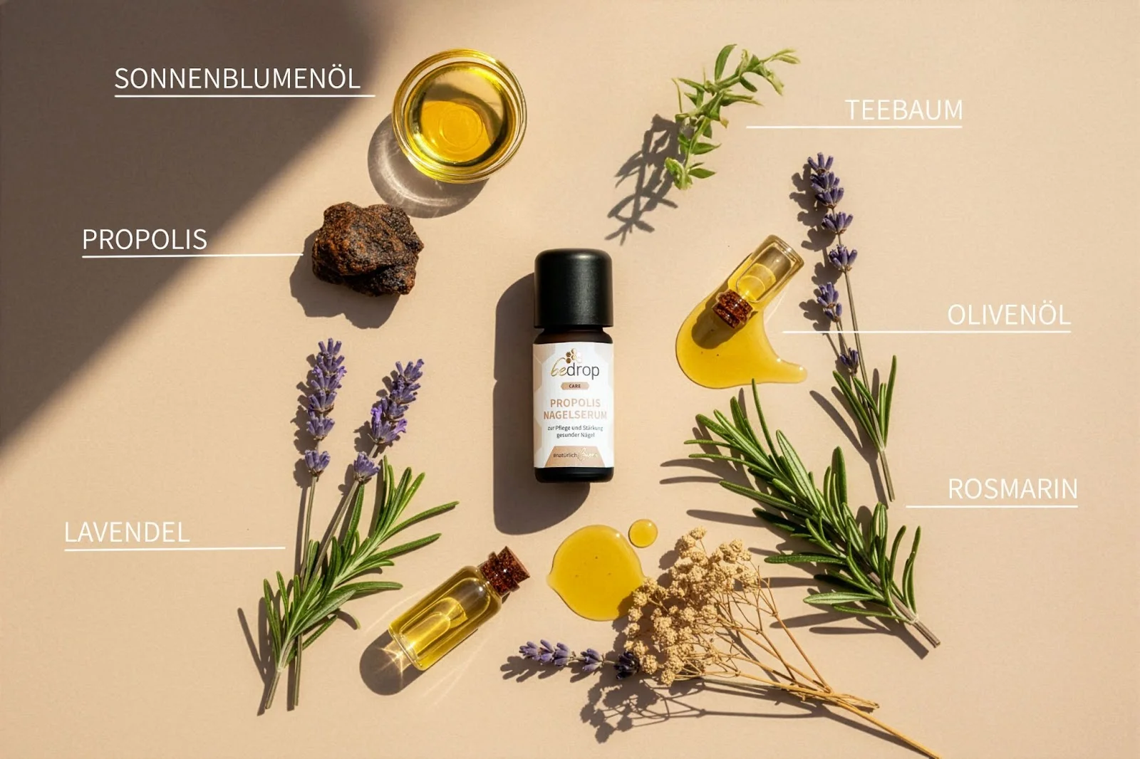 Das Besondere liegt in der Wirkstoffdichte und der Rezeptur. Während viele Produkte auf verdünnte Lösungen setzen, enthält das Serum eine hohe Konzentration an reinem Propolis. Ergänzt wird dies durch ätherische Öle wie Lavendel, Teebaum und Zitronengras. Diese Kombination schafft ein Umfeld, in dem Pilze kaum gedeihen können, und unterstützt gleichzeitig das gesunde Nagelwachstum.