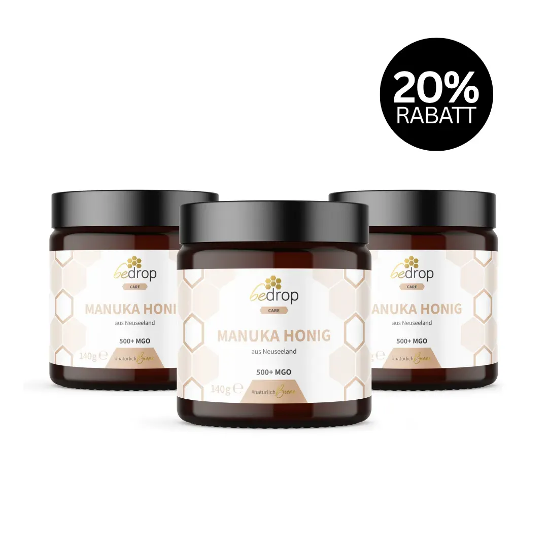 Bei MGO-Gehalten unter 400 mg/kg verhält sich Manuka-Honig in seiner Zusammensetzung ähnlich wie normaler Blütenhonig. Die wissenschaftlich dokumentierten Wirkungen beziehen sich auf höhere MGO-Konzentrationen. Für präventive und immunstärkende Zwecke empfiehlt sich MGO 500+ als die Stufe mit der verlässlichsten Wirkstoffkonzentration.